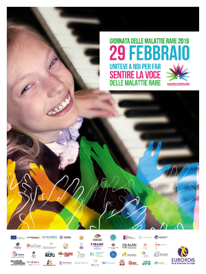 Con il tema: “La voce del paziente” la Giornata 2016 vuole riconoscere il ruolo cruciale che i pazienti possono avere nel migliorare la loro vita e quella di chi li assiste esprimendo, attraverso i loro rappresentati, le proprie istanze nei tavoli decisionali; lo slogan “Unitevi a noi nel far sentire la voce delle malattie rare” vuole fare appello al grande pubblico di unirsi alla comunità dei malati rari nel far conoscere l’impatto delle malattie rare nella vita delle persone e delle famiglie che ne sono colpite.